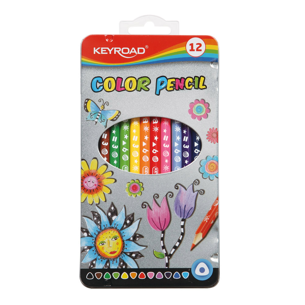 / Colores triangulares. Mina 3mm. Caja de metal 12 und