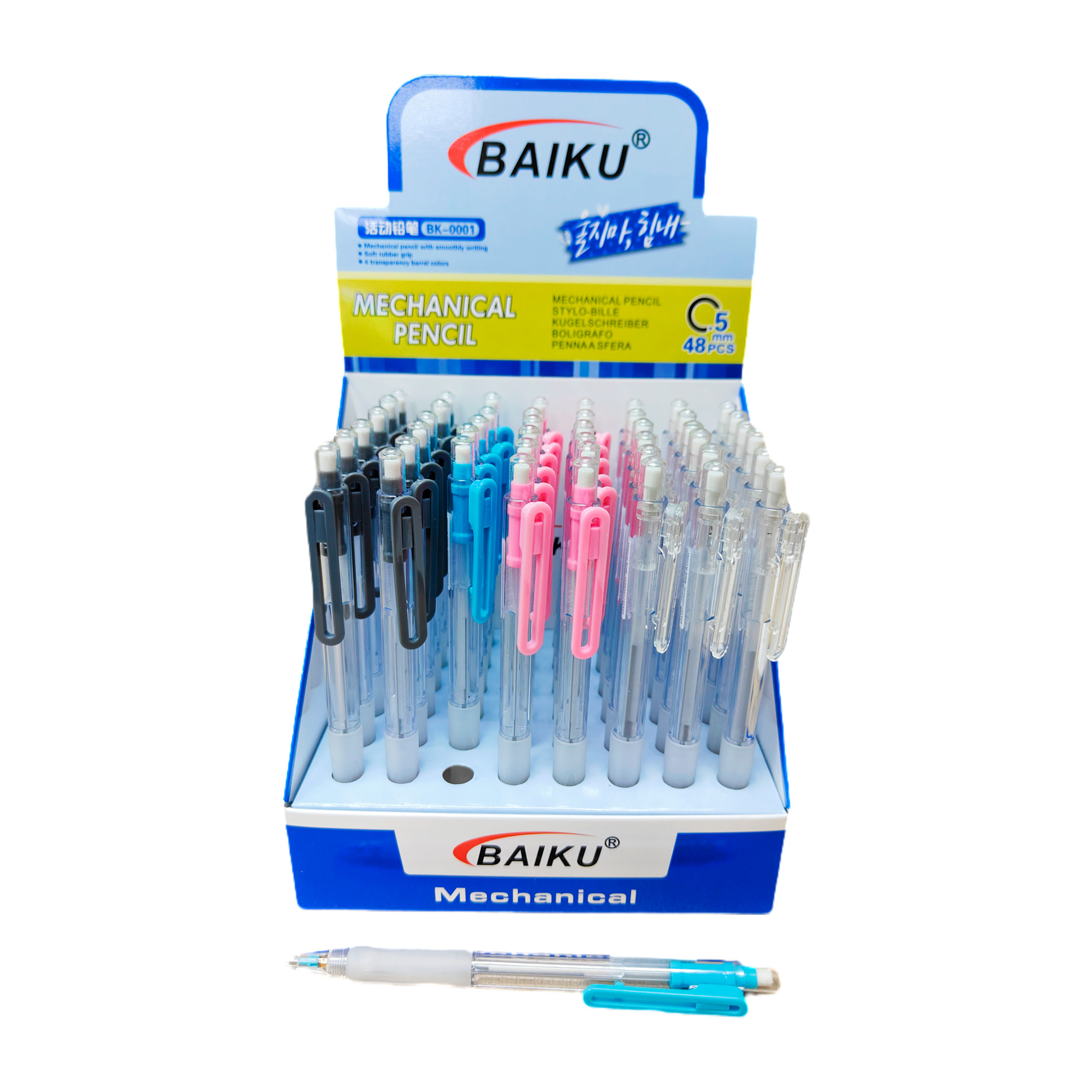 / Portamina 0.5mm empuñadura de goma blanda con borrador. 48 Und